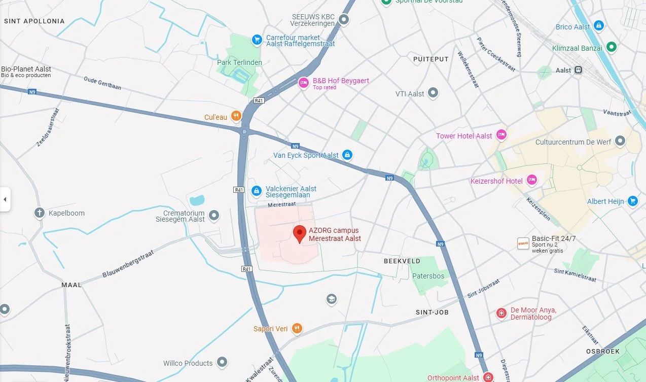 Neem afrit 19 (Aalst) en volg richting Dendermonde. Aan de tweede lichten rechts afslaan. Na 100 meter draait u rechts de campus op.