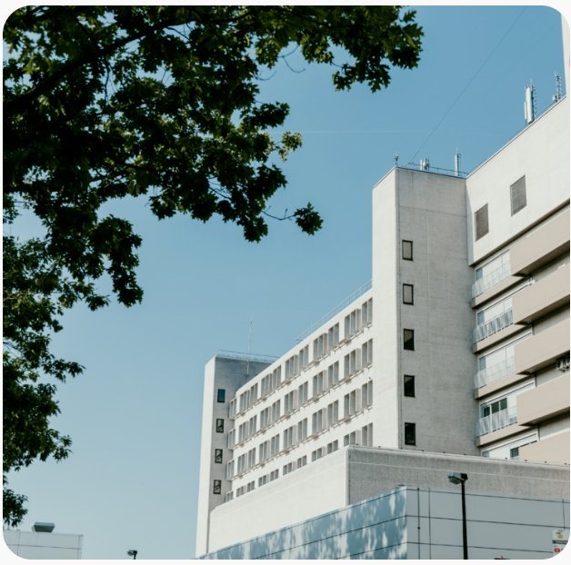 De bezoekersparking van Campus Merestraat bevindt zich voor het ziekenhuis. De betaalautomaten staan aan de buitenkant van het onthaal.